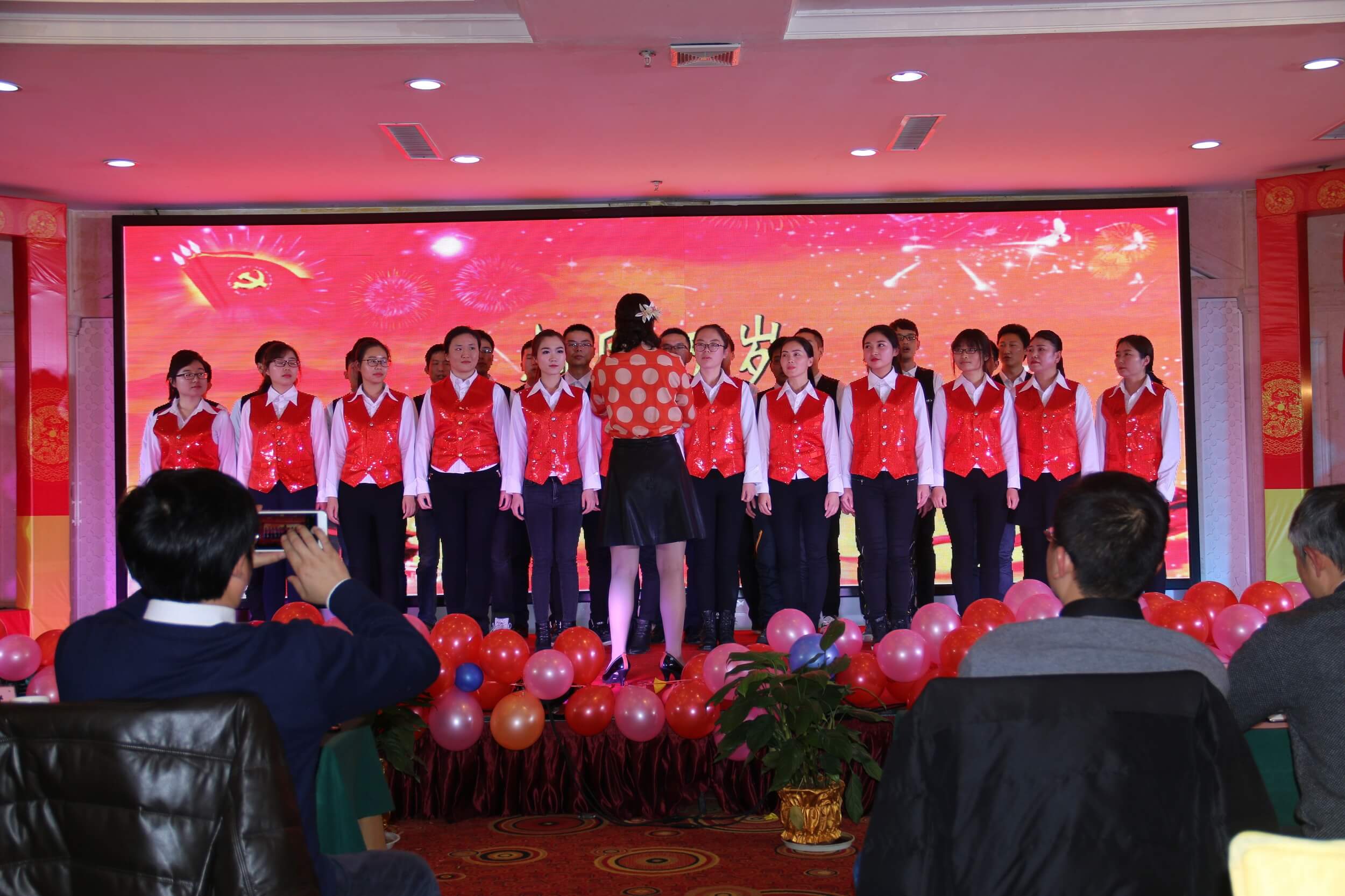 接下來晚會文藝匯演環節,由李嬌、甘愿等表演的《歌舞春天》,劉星天演唱的《兄弟無悔》,柴上京、湯展表演的《雙截棍/武術‐中國風》,張妙雪小朋友演唱的《兒童民謠‐馬蘭謠》,馬雙雙、郭秀麗等表演的舞蹈《茉莉花》,劉偉、周烜等表演的創意走秀‐產品秀等,各部門代表表演的大合唱《詩與歌‐中國大腦暢想曲》等節目依次上演,演出或豪氣雄壯,或婉轉動人,或天真可愛,匯演掌聲雷動,大獲成功!獲得了全體員工和公司領導的高度好評。