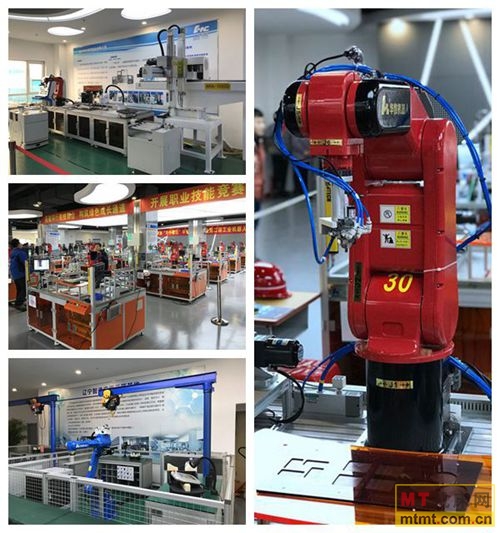 ? ? ?熊總在采訪中講到華中數控(遼寧)智能制造應用示范基地是目前東北地區規模最大、設備最為齊全的工業機器人實訓基地?;嘏溆忻襟w教室、實訓室、技能訓練中心等教學場所,占地面積近2萬平方米。是由武漢華中數控股份有限公司與遼寧東升智能產業發展有限公司共同出資打造。引進了工業機器人操調實訓平臺、工業機器人機電一體化拆裝工作站、智能制造生產線、五軸加工中心以及3D打印機等先進智能制造設備60余套,可同時容納300人進行實訓。為此次競賽提供了充足條件。